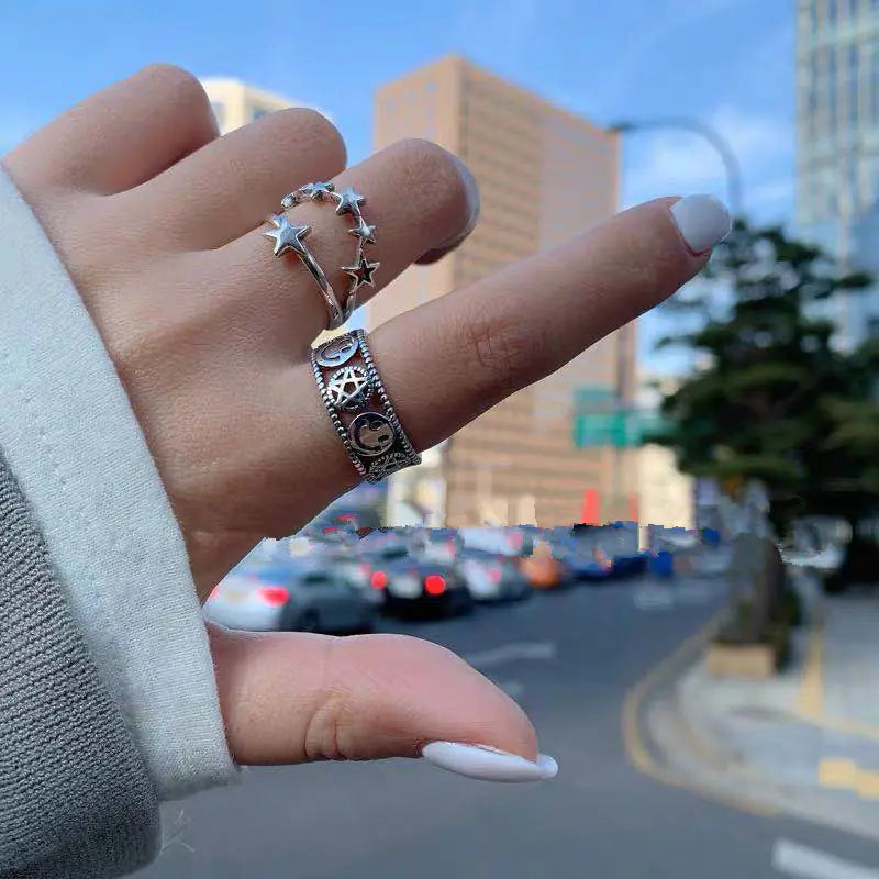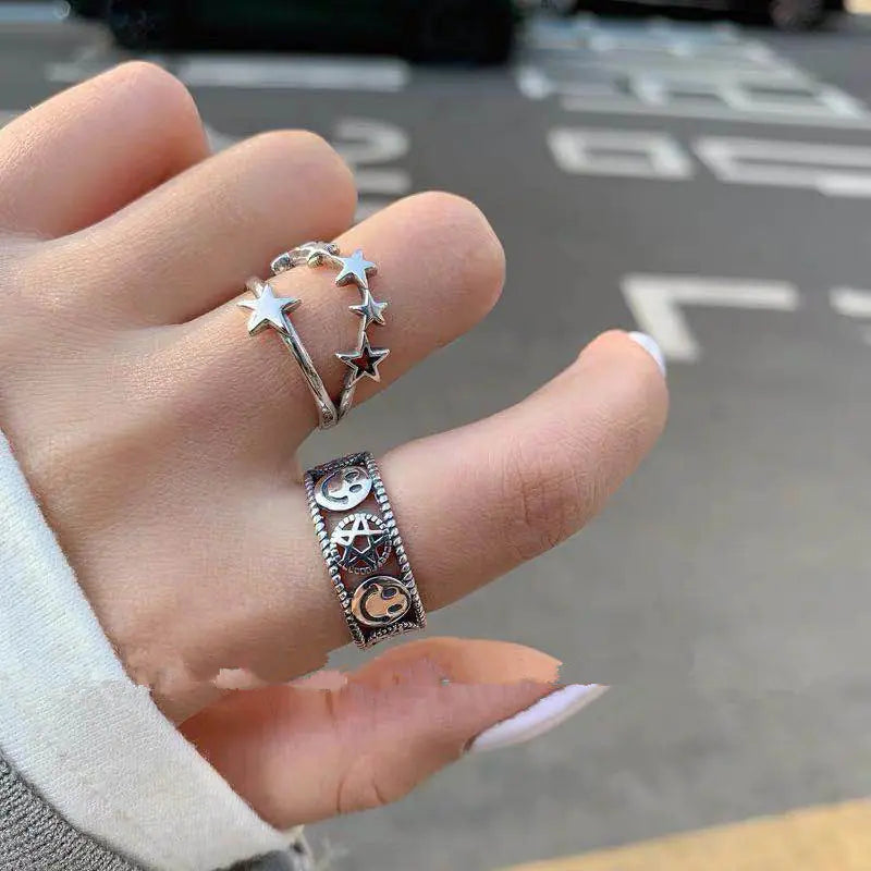 Vintage Smiley Face Five-Point Star Ring